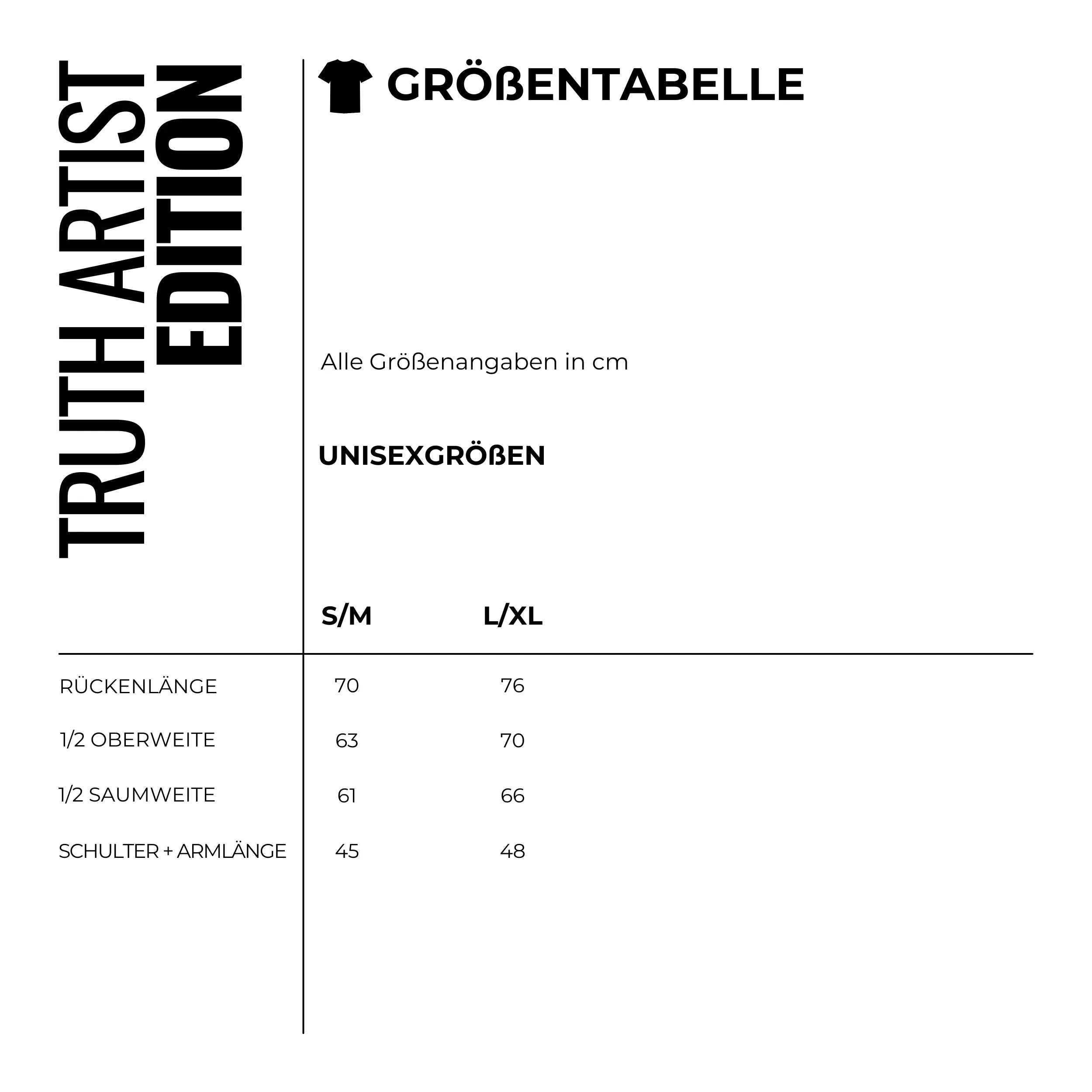 Für den Oversize-XXL-Look oder für sehr breite Körperformen empfehlen wir die Größe L/XL.