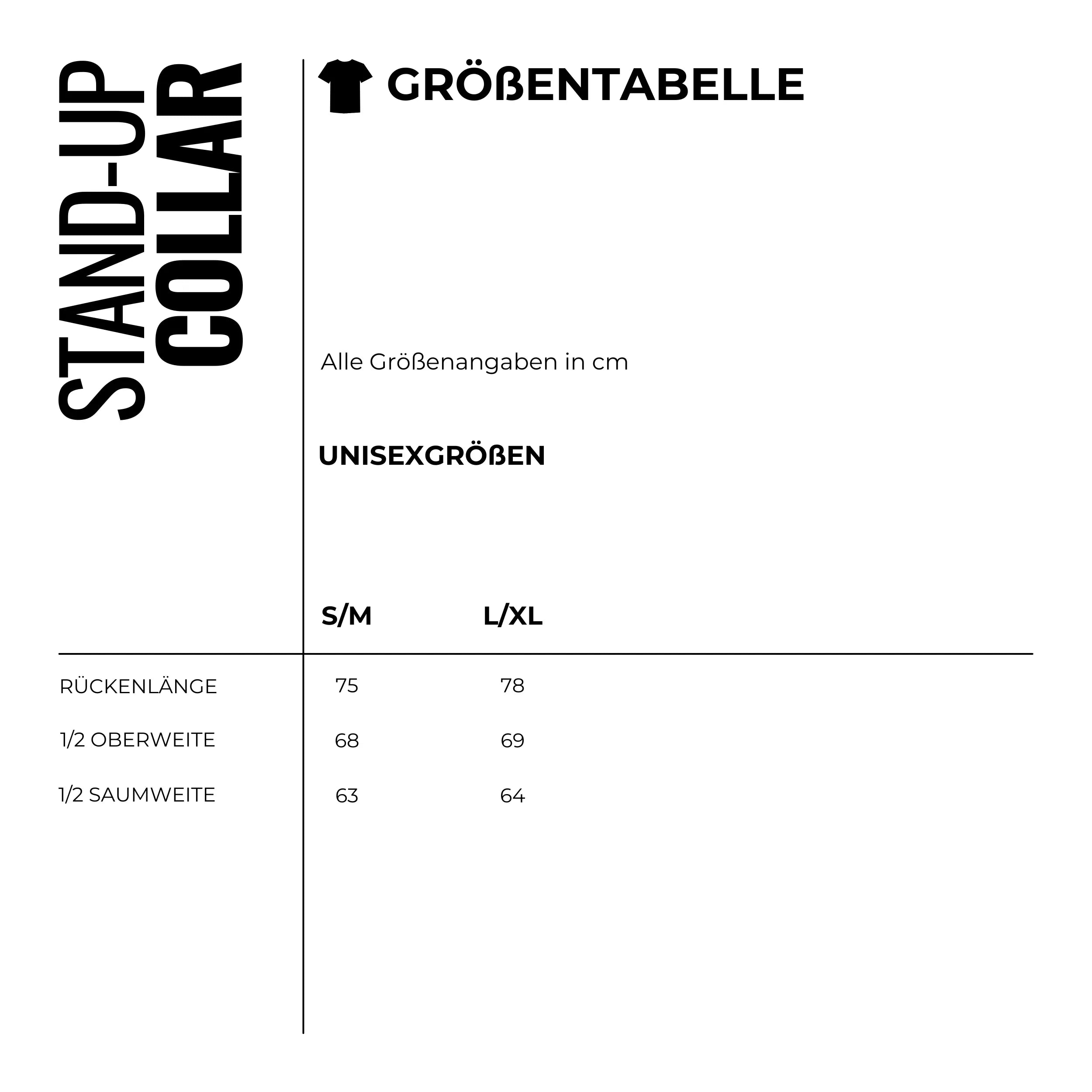 - Für den Oversize-XXL-Look oder für sehr breite Körperformen empfehlen wir die Größe L/XL.